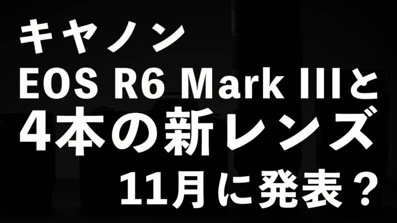 11月に「EOS R6 Mark III」や4本の新レンズが発表されるとの情報がCanon Rumorsに掲載されています。Canon EOS R6 ...